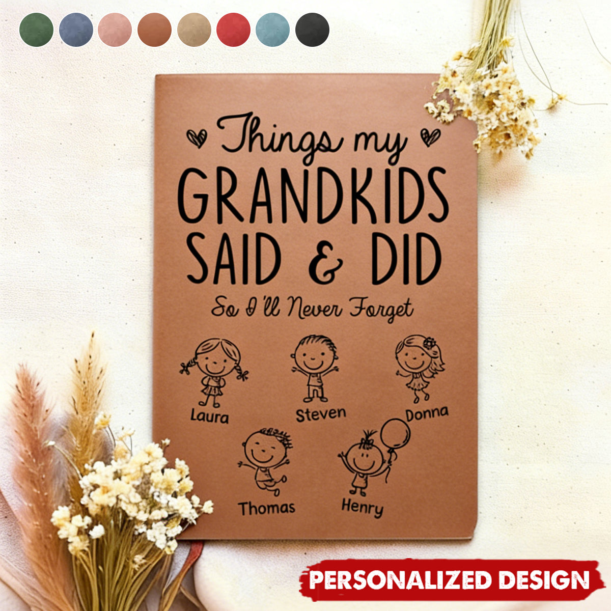 Things My Grandkids Said & Did - Personalized Leather Journal, Gifts For Grandpa, Grandma, Grandparents